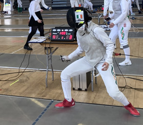 The Irish National Fencing Championships, held last Saturday and Sunday, decide the six senior fencing champions for all of Ireland each year, i.e. in men’s and women’s foil, epee and sabre. This year they were held in the Sports Centre of Dublin’s Technological University in Blanchardstown. SUFC had 7 entrants: Amelia Penny, Cassidy Ogle, Erin Keogh and Lydia Hamilton in the women’s foil and Myles Wilkinson, Flynn Woolsey-Jensen and William Penny in the men’s foil. Also competing was ex-Sullivan fencer Alexander Penny (currently with Oxford University Fencing Club).