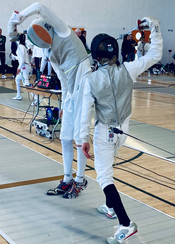 In the men’s foil Myles and Alexander both made the last 16, but progressed no further, finishing in 12th and 13th. Flynn and William (still U14 juniors) both lost in the L32, but only after battling hard against much older and more experienced fencers.